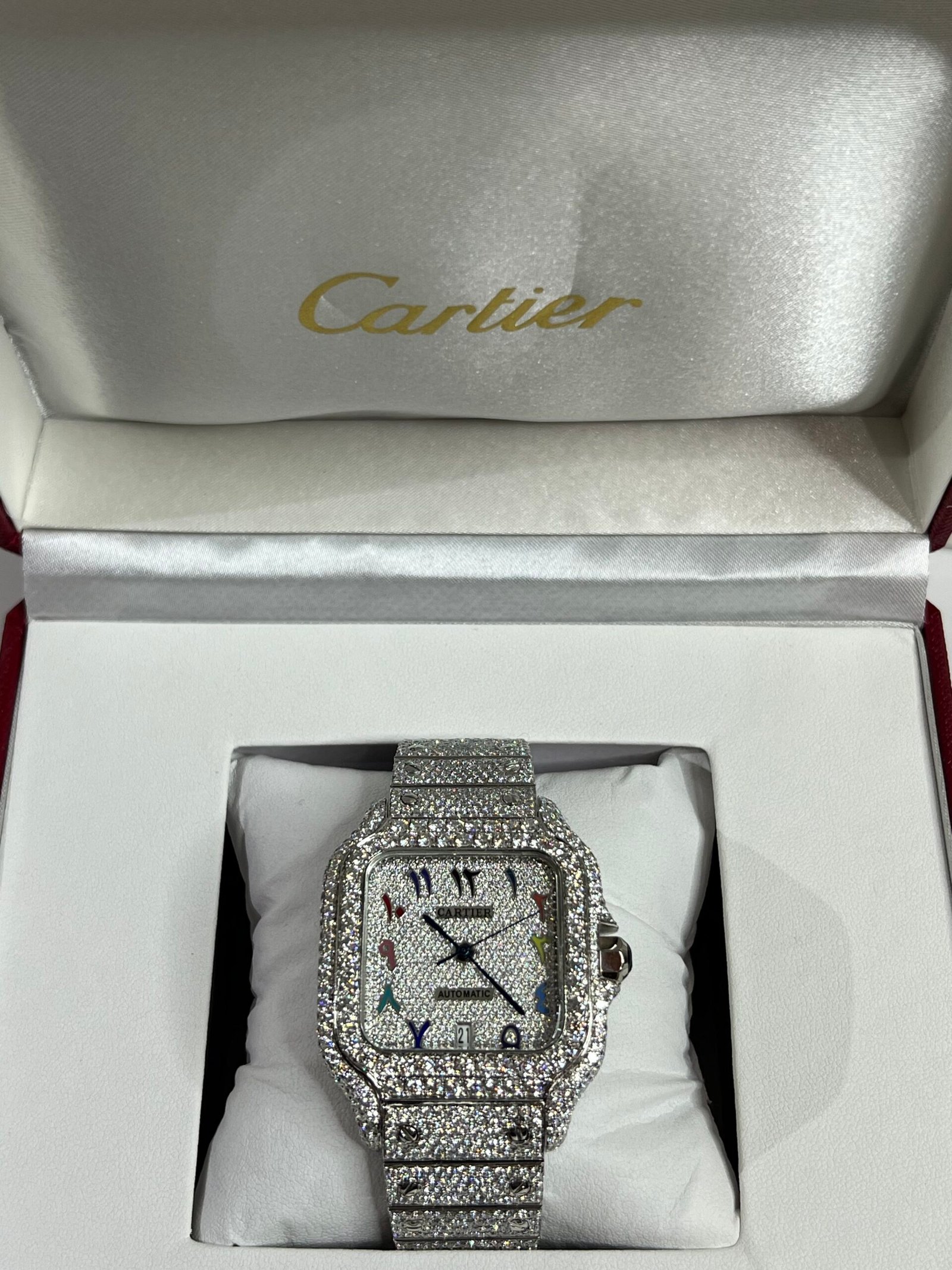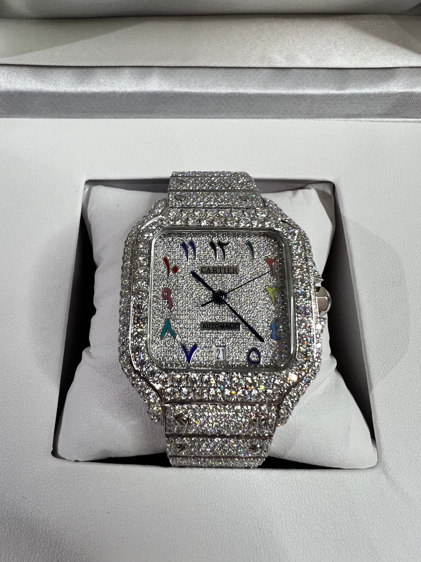Fully Iced Out Moissanite Rainbow Carti Arabic Dial