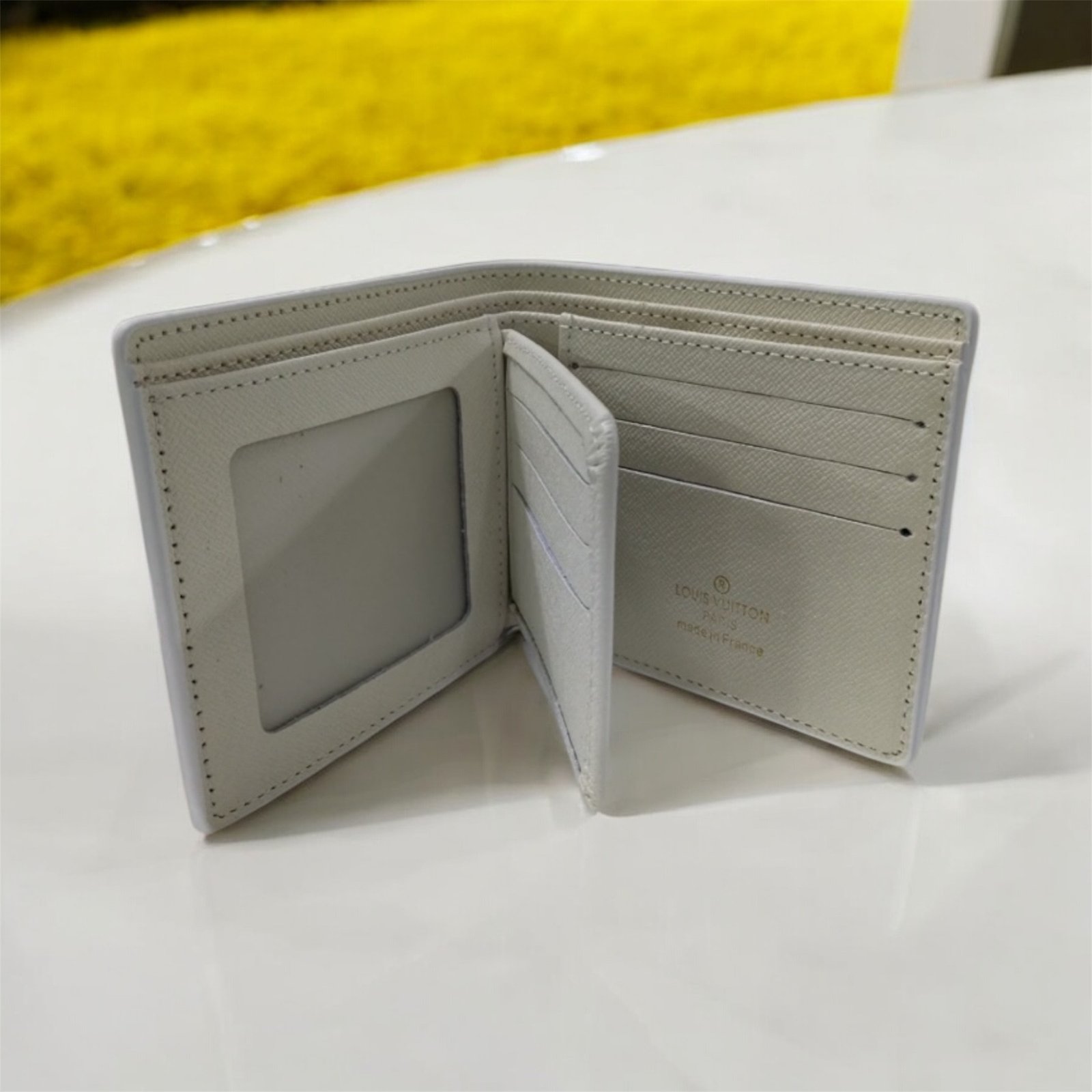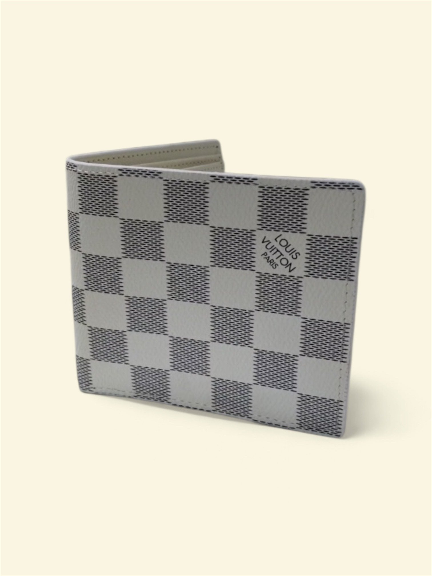 The LV white Bifold Wallet Monogram for men is a stylish and luxurious accessory crafted from leather with a classic monogram pattern. This wallet features a logo accent and a sleek bifold design. It is perfect for storing bills and cards in a sophisticated and timeless style, making it a must-have for any fashion-conscious man. The black color and iconic branding add a touch of elegance to any wardrobe.